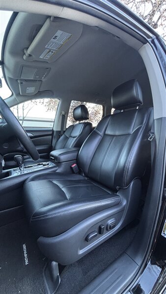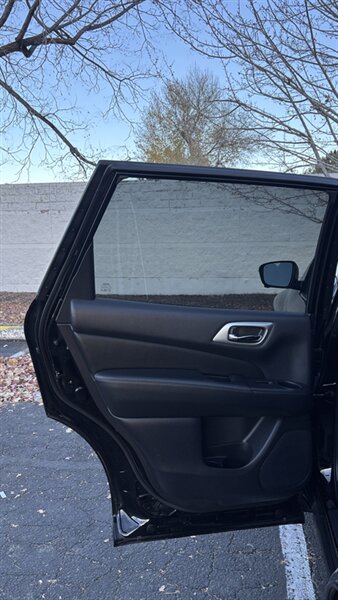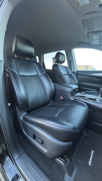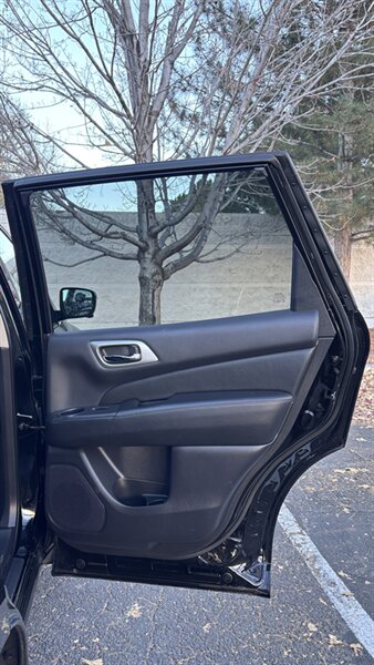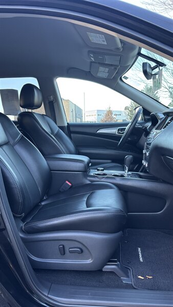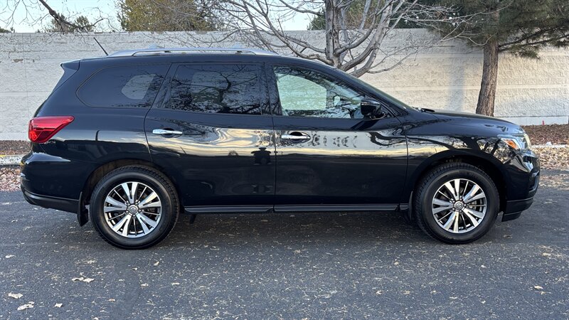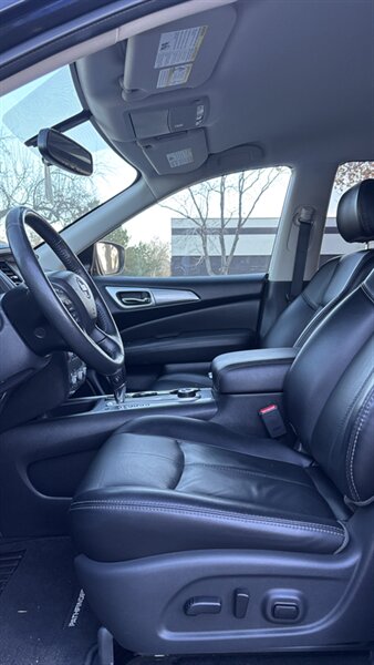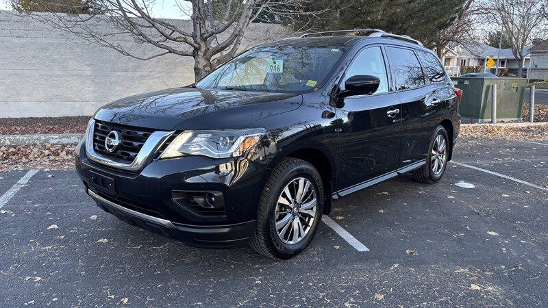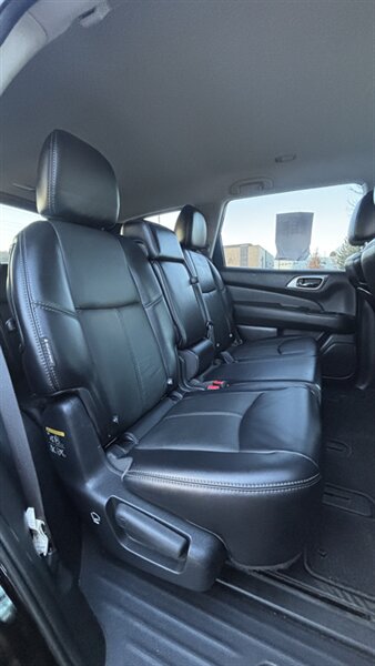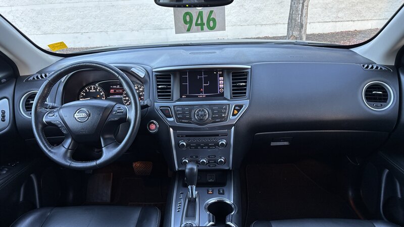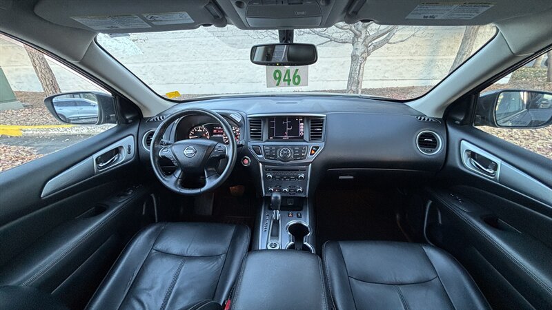 The exterior of this Pathfinder is finished in a striking Magnetic Black, providing a sleek and sophisticated appearance that stands out on the road. The SUV features 18-inch alloy wheels, LED daytime running lights, and a power liftgate for added convenience.